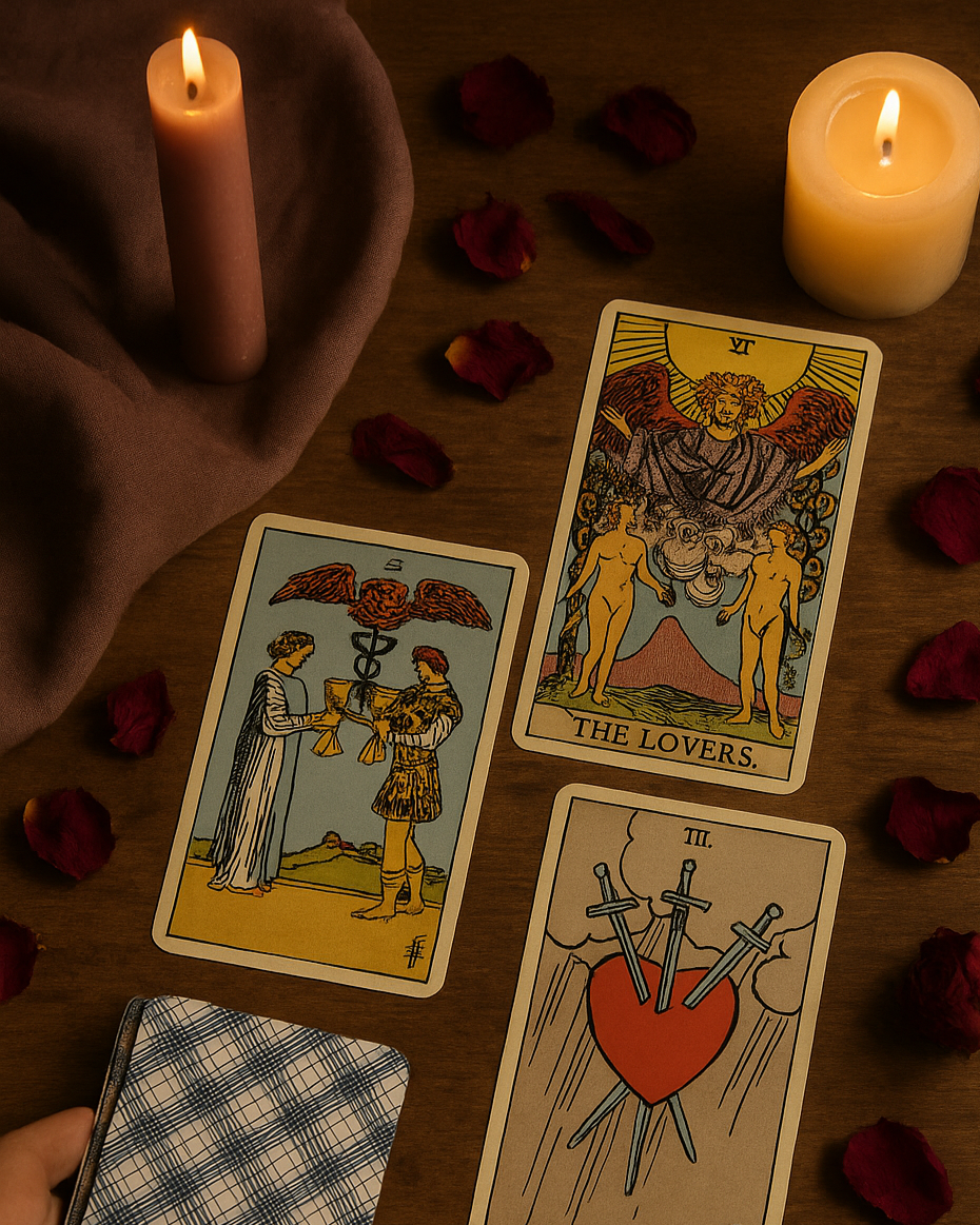 From in-depth tarot journeys to hand-picked magical tools, my work is rooted in clarity, connection, and a touch of the mystical. Whether you choose an email reading you can revisit in your own time or the layered depth of Roots & Realms, or treasures from my shop to weave into your own practice, each offering is crafted to support and inspire your path.